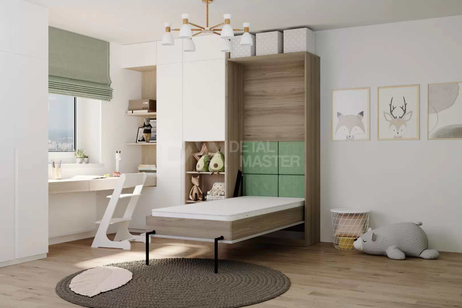 Детская шкаф-кровать "Flip Bed Start" работает на механизме раскладывания собственной разработки "Start". Кровать раскладывается легким движением руки, превращаясь в полноценное спальное место. Просто потяните ее за ручки, расположенные на фасаде и выставите ножки-опоры.
